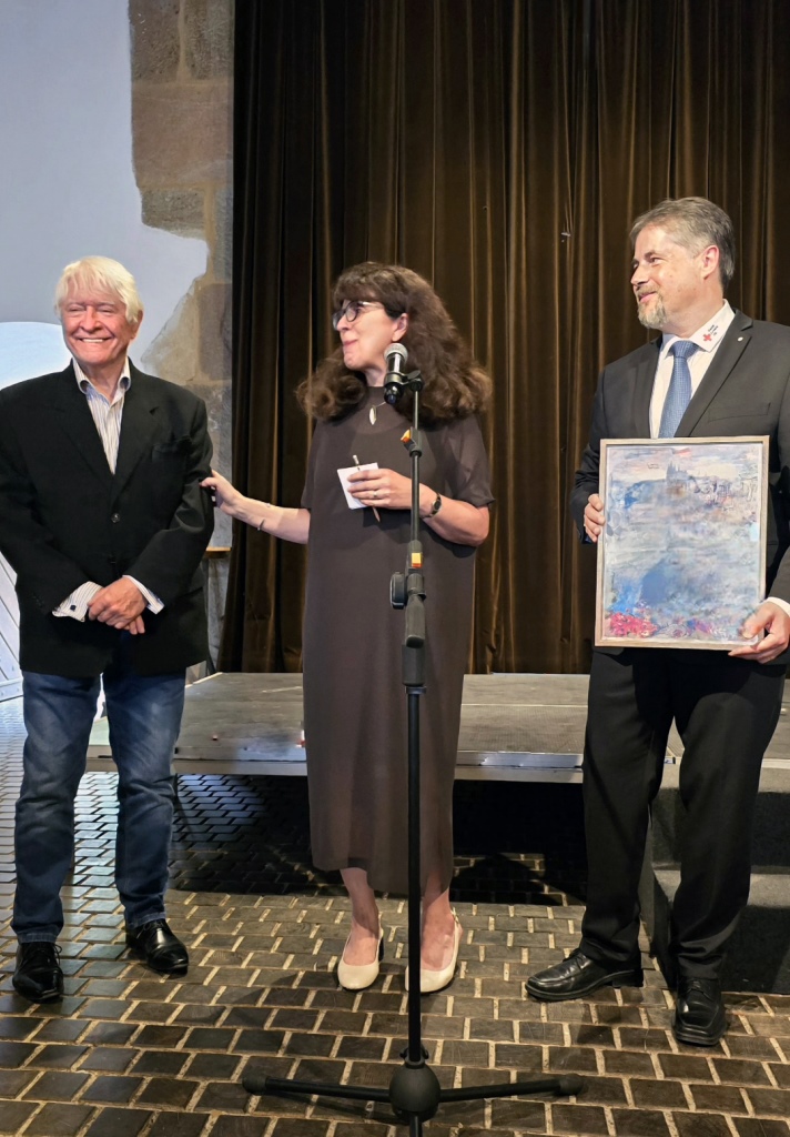 Po skončení výstavy bude toto rozměrné plátno zdobit zasedací síň v sídle ČČK. Při zahájení výstavy nám předal P. Vavrys symbolickou miniaturu obrazu a jako poděkování obdržel Děkovné uznání s medailí z rukou prezidenta ČČK Marka Jukla.