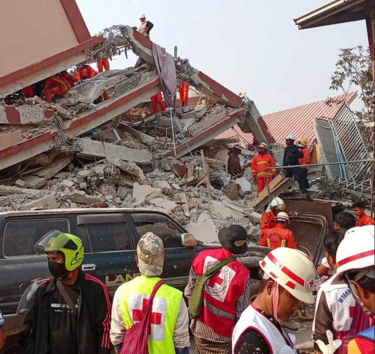»28.03.2025-Myanmar: Dnes kolem 7h SEČ zasáhlo centrální Myanmar zemětřesení o síle až 7,7° Richt. stupnice s epicentrem blízko druhého nejv. města Mandaly. Podle zasahujícího Myanmarského ČK jsou humanit. potřeby obrovské a stále se vyvíjející. Týmy ČK zasahují v terénu a poskytují vitální pomoc, vyhledávají zavalené a poskytují pomoc zachráněným a evakuovaným. Organizuje také nouzové zásobování nemocnic krví.