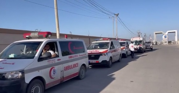 »21.10.2023-Izrael/okupovaná území: Dnes projel do Gazy první konvoj s humanitární pomocí. Šlo o pomoc Mezinárodního hnutí ČK&ČP. Jeho přepravu zajistil Egyptský ČP a byl převzat Palestinským ČP. Šlo o celkem 20 kamionů - 6 s léky, 7 se zdravotnickým materiálem, 5 s potravinami a dva s pitnou vodou...